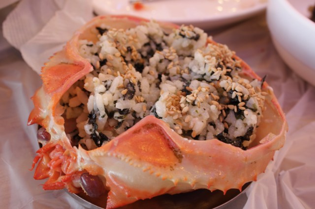On Sunday we took a bus to Gangneung, a larger town with an absolutely immense beach. We were wandering around the beach starving when we saw large tanks full of crabs and other delicious live crustaceans and decided to stop in. It was definitely the most expensive meal on the trip (about $30/person) but we each got an entire crab, clams, quail’s eggs, and the proprietor took the body of the crabs and made incredibly delicious seaweed fried rice with all the gooey insides. Seriously, it was amazing.